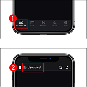 アプリを開き、「DASHBORD」→「カード名をタップ」