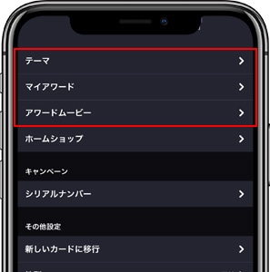「テーマ」「マイアワード」「アワードムービー」で設定